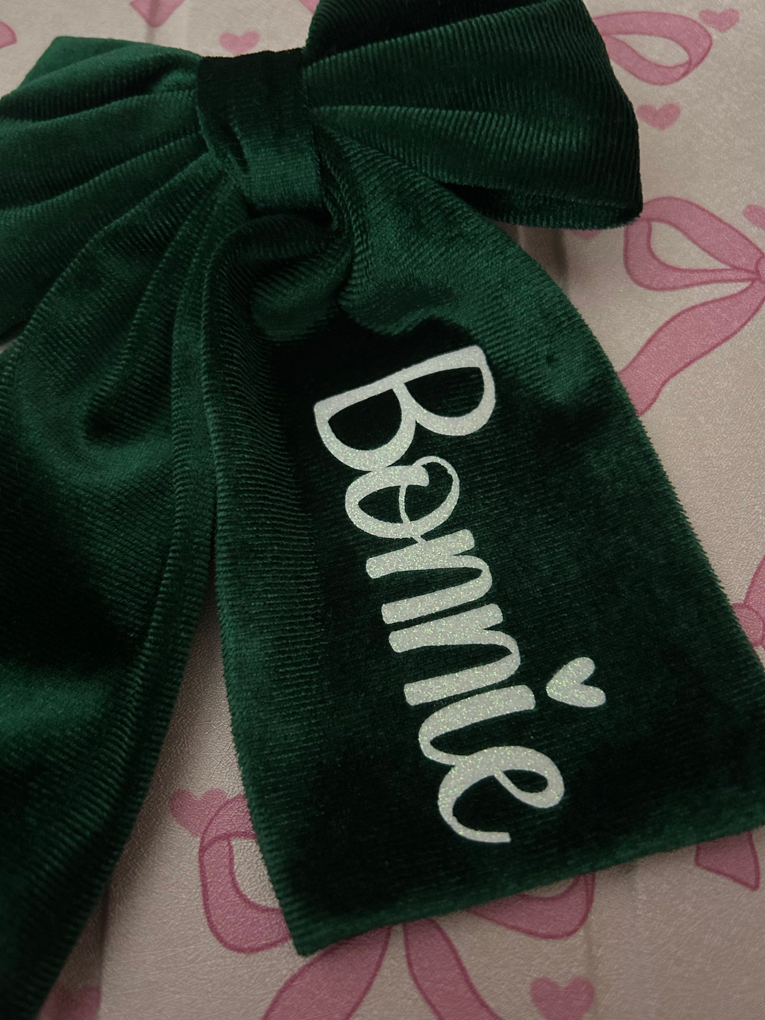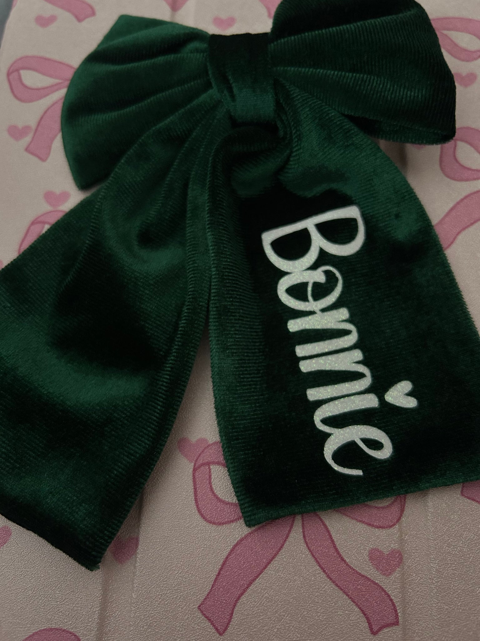 Will be personalised in the same way as my red XL velvet hair bows on my page. These ones are slightly smaller, have a different style clip and LIMIT STOCK!