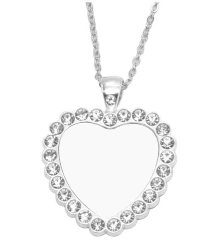 Our love heart necklace is made of zinc and approx 25mm on a 28cm hooped chain. It can be printed with your choice of image in the heart- please message me on socials or email info@meganlouisecreations.com with your chosen image and order number.